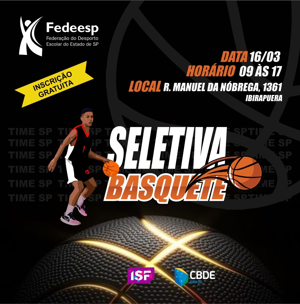 A Seletiva Estadual de Karatê Escolar para os Jogos Escolares Brasileiros Sub 18, será realizada na dia 16 de março de 2024, no Completo Esportivo do Ibirapuera, Rua Manoel da Nóbrega, 1361– São Paulo/SP.